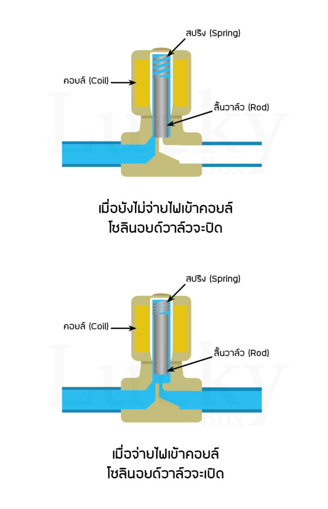 ของของไหลเมื่อจ่ายไฟฟ้าเข้าหรือหยุดจ่ายไฟที่คอยล์ของวาล์ว