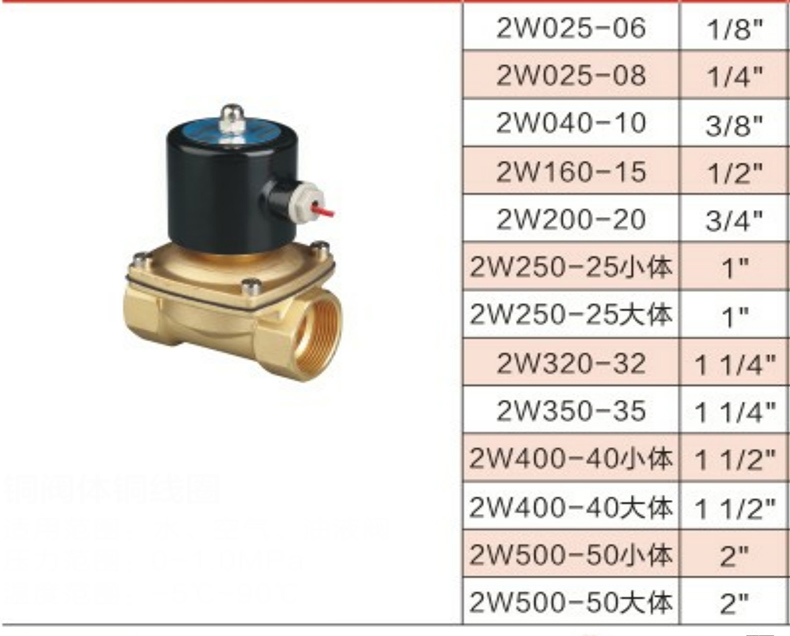 โซลินอยด์วาล์ว ประกอบด้วยแม่เหล็กไฟฟ้าสําหรับทําหน้าที่ปิดเปิดวาล์วเมื่อเปิดและปิดสวิทซ์ เมื่อกระแสไหลผ่านขดลวดแม่เหล็กไฟฟ้า สนามแม่เหล็กที่เกิดขึ้นจะดูดเดือยวาล์วเพื่อเปิดวาล์ว และเมื่อปิดสวิทซ์ตัดกระแสไฟฟ้าเดือยวาล์วจะกลับไปสู่ตําแหน่งเดิม โซลินอยด์วาล์ว(Solenoid Valve) 2 ทาง ใช้กับงานลม, แก็สทั่วไป, น้ำ, น้ำมัน