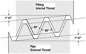1.เกลียว NPT (National Pipe Thread Taper) (เกลียวสโลพ) เป็นเกลียวมาตรฐานอเมริกา เรามักเรียกตามขนาดเกลียวว่า ½” NPT มีลักษณะเป็นเกลียวเอียง ปลายเกลียวตัด มุมยอดเกลียว 60 องศา มีใช้เยอะในท่อน้ำและท่อก๊าซ