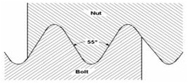 6.เกลียว BSW (British Standard Whitworth) เป็นเกลียวมาตรฐานอังกฤษอีกเหมือนกัน ชื่อรุ่นเช่น ¼ “BSW ลักษณะเป็นเกลียวตรง มุมยอดเกลียว 55 องศา