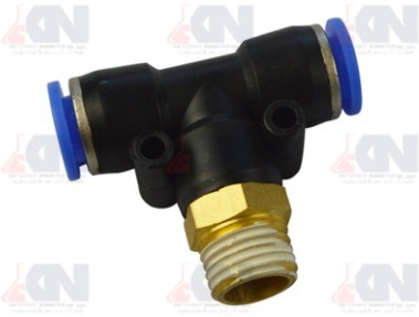 ข้อต่อลมสามทางเกลียวกลาง ฝาสีฟ้า(Air Fitting) หรือ ฟิตติ้ง (Fitting) คือ ข้อต่อสำหรับเสียบสายลม มีการใช้กันอย่างแผร่หลายในเครื่องจักร ที่ใช้วาล์วลมควบคุม หรือใช้เป็นข้อต่อสายลมกับโซลินอยด์วาล์ว หรือ กระบอกลม ฯลฯ หรือต่อสำหรับเสียบสายลม ที่ใช้กับระบบนิวเมติกส์ โดย มีหน้าที่ในการเชื่อมต่อระหว่างอุปกรณ์นิวเมติกส์กับสายลม หรือเชื่อมต่อระหว่างสายลมกับสายลม เสียบเข้าฟิตติ้งลมก็ได้ และรวดเร็วง่ายดายในการต่อสายลมระหว่างอุปกรณ์นิวเมติกส์ สามารถถอดสายลมได้ิย่างง่ายโดยทีี่ไม่หลุดง่าย หรือ ใส่สายลมได้อย่างสะดวกและรวดเร็ว และราคาถูก ด้วยเหตุนี้ จึงทำให้ ข้อต่อลม (Air Fitting) หรือ ฟิตติ้ง (Fitting) เป็นที่นิยมใช้กันอย่างแพร่หลายในอุตสาหกรรมทุประเภท