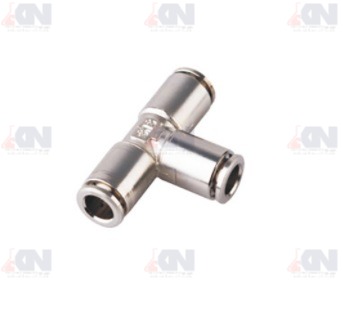 ข้อต่อลม ข้อต่อสามทางตัวที ทองเหลืองชุบนิเกิล(Brass-Push in Fitting) (Air Fitting) หรือ ฟิตติ้ง (Fitting) คือ ข้อต่อสำหรับเสียบสายลม มีการใช้กันอย่างแผร่หลายในเครื่องจักร ที่ใช้ลมควบคุม หรือใช้เป็นตัวต่อสายลมกับโซลินอยด์วาล์ว หรือ กระบอกลม ฯลฯ เพราะสะดวกง่าย หรือต่อสำหรับเสียบสายลม ที่ใช้กับระบบนิวเมติกส์ โดย มีหน้าที่ในการเชื่อมต่อระหว่างอุปกรณ์นิวเมติกส์กับสายลม หรือเชื่อมต่อระหว่างสายลมกับสายลม หรือหลายท่อสายลมบนฟิตติ้งลมก็ได้ และรวดเร็วในการต่อสายลมระหว่างอุปกรณ์นิวเมติกส์ สามารถถอดสายลม หรือ ใส่สายลมได้อย่างสะดวกและรวดเร็ว และราคาถูก ด้วยเหตุนี้ จึงทำให้ ข้อต่อลม (Air Fitting) หรือ ฟิตติ้ง (Fitting) เป็นที่นิยมใช้กันอย่างแพร่หลาย